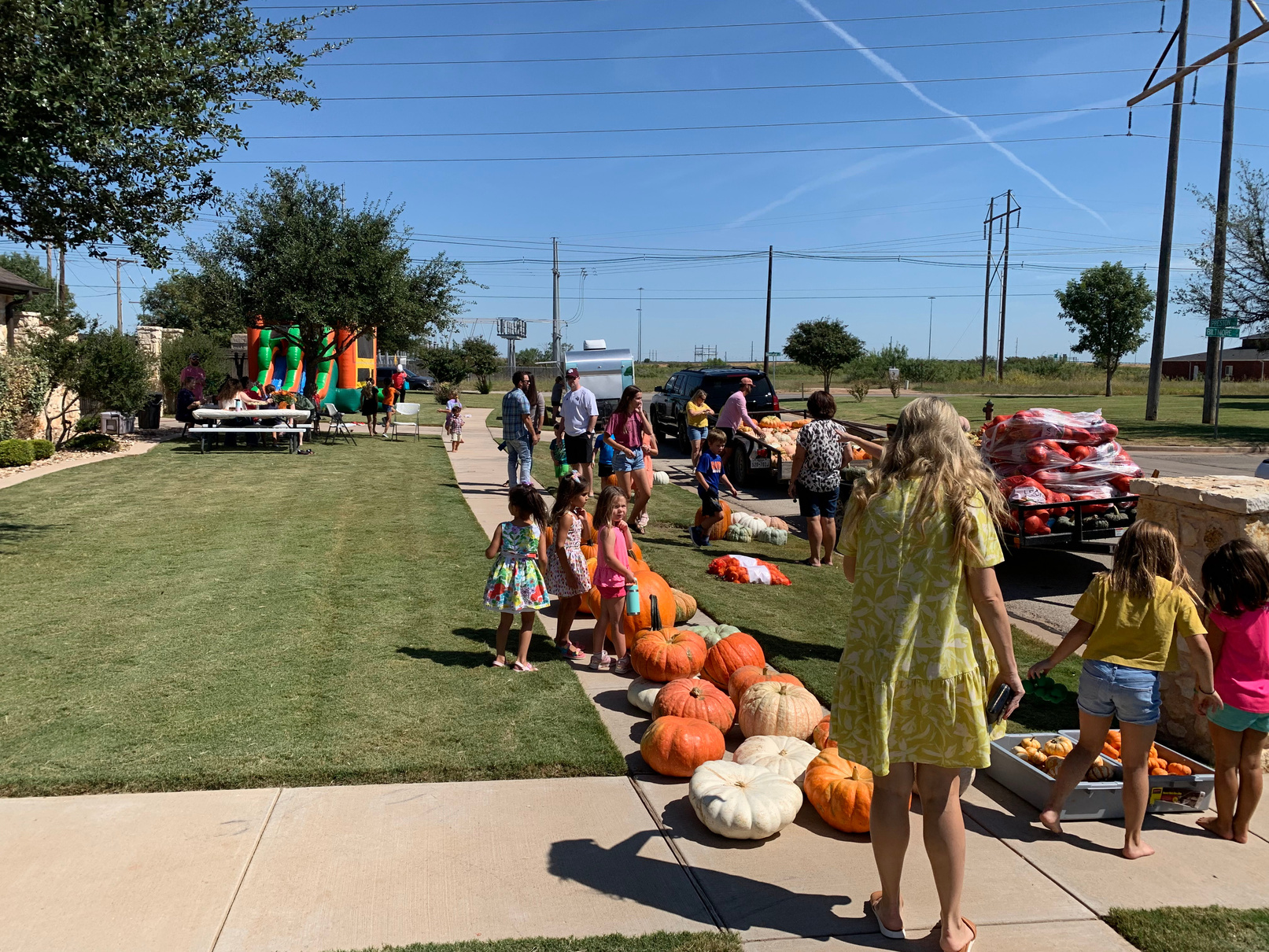 I bring a trailer full of pumpkins to your neighborhood free of charge. You Invite your friends!